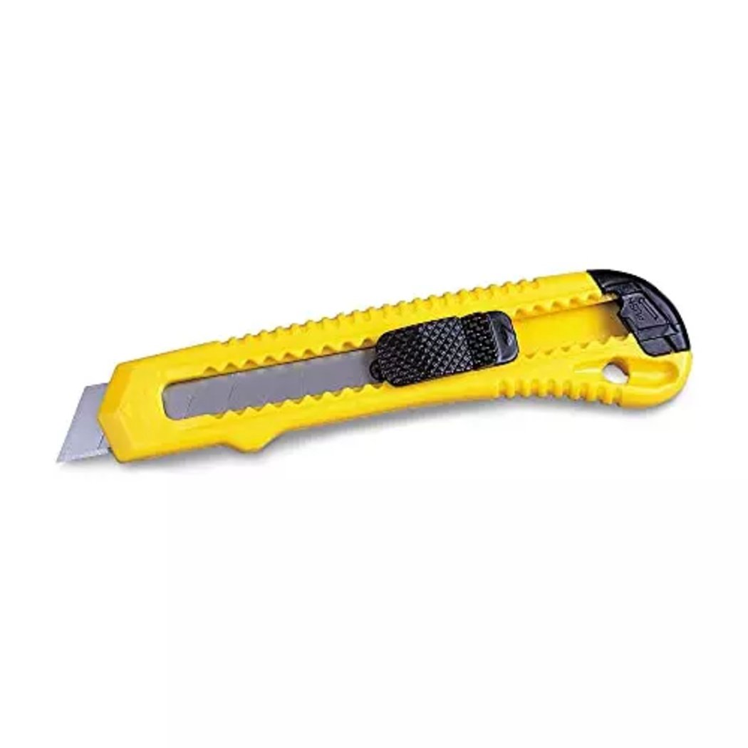 Cutter 18mm – Heavy-duty utility cutter with an 18mm wide sharp blade, perfect for cutting cardboard, packaging materials, plastic sheets, and craft items. Designed with a strong grip and smooth sliding mechanism for safe and precise cutting.